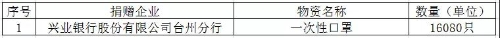 二、物资捐赠接收情况 捐赠单位明细如下表: