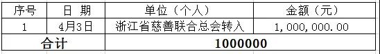 现将台州市慈善总会接收使用捐赠款物情况(4月2日24时-4月7日24时)公示如下: